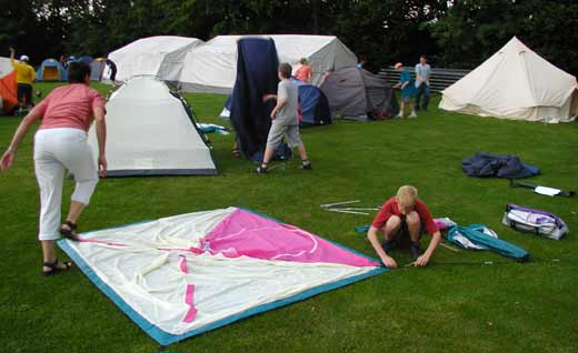 bauten die Betreuer schnell noch die Zelte fertig
